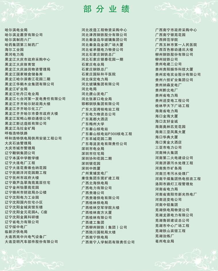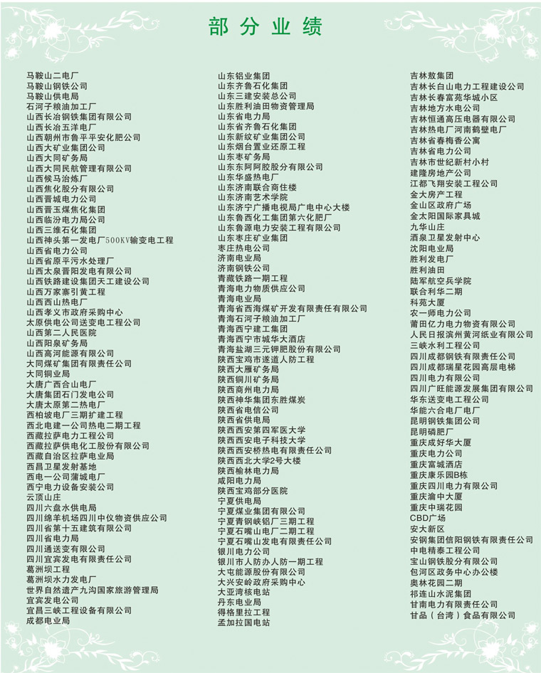 集團(tuán)通過了IS09001質(zhì)黽管理體系認(rèn)證、IS014001環(huán)境管理標(biāo)準(zhǔn)體系認(rèn)證,同時集團(tuán)系列產(chǎn)品均獲國家工業(yè)產(chǎn)品生產(chǎn)許可證,國家強(qiáng)制性CCC認(rèn)證,礦用產(chǎn)品均通過國家安檢局MA煤安標(biāo)志認(rèn)證,船用產(chǎn)品均通過...